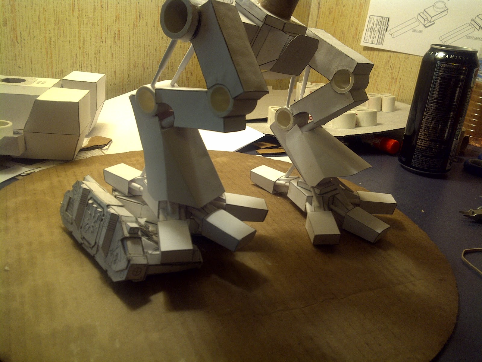 So the servitors of Forgeworld Rohan have been busy this morning... I finished the stomped Chaos Rhino, I got all the leg sections done and piston-ed (still need to come up with an idea for the endcaps on the leg joints... the hollow PVC doesn't exactly say sturdy), and even got a couple shots of what the thing is gonna look like when the top section is complete. Lots of detail work to be done on this bad boy, and I keep coming up with interesting ideas on how to make it better. Also, I've made it so the top section can rotate around and what not. I'm amused.
